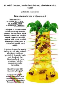 nnCopak nás to na Dni her a hlavolamů 25.1. vlastně čeká?nnZahrajeme si známé i méněnznámé stolní hry (domino,npexeso, šachy, dáma, logik,nčlověče nezlob se, mikádo,nnervík, Scrabble a další),nbudeme řešit různě obtížnénhlavolamy a připravena jenzávěrečná soutěž mezinoddíly.nnU toho nesmím chybět, a ty?zvadloDHH2020